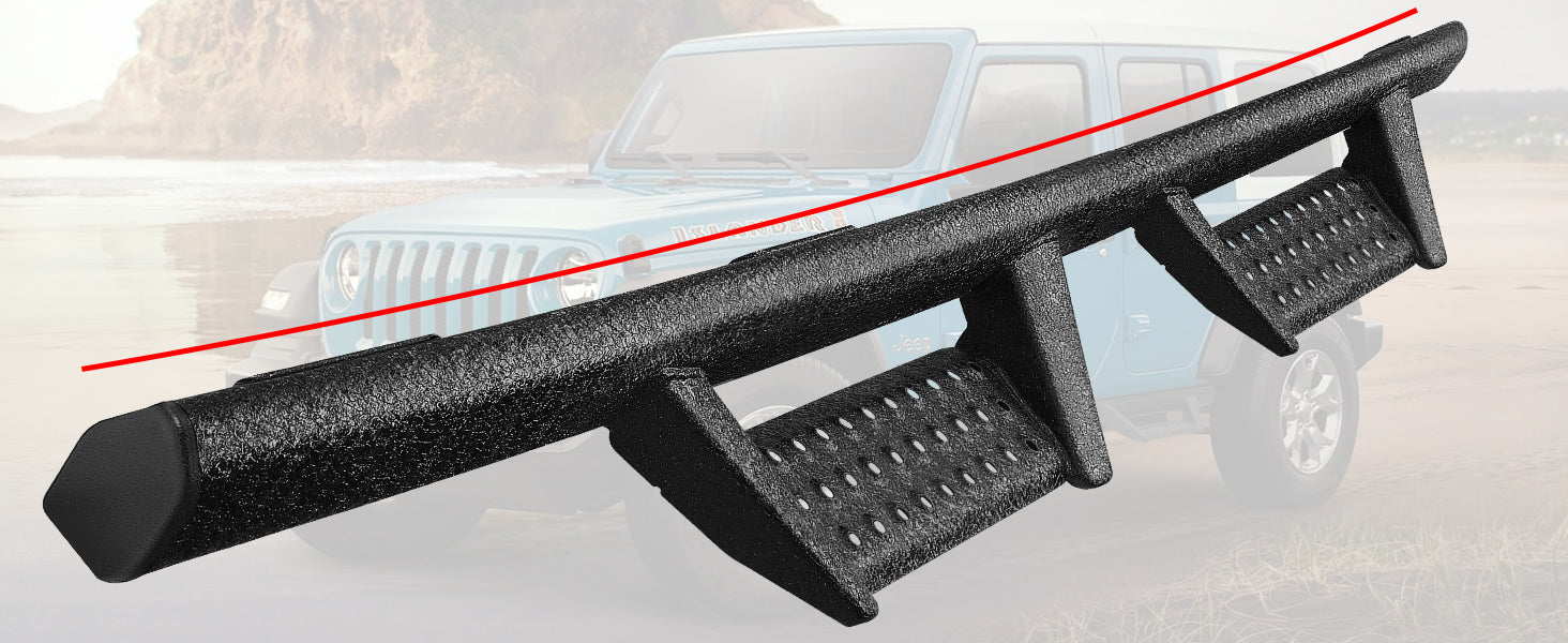 Rock Rails Design - The SMANOW Gladiator running boards have the same curved design as the OEM rock guards to ensure a snug fit without gaps, while most sides teps on the market are straight-bar designed that often leave gaps at the rear. BINARY STAR rock rails design running board offers both side and undercarriage protection while facilitating easy access for passengers.