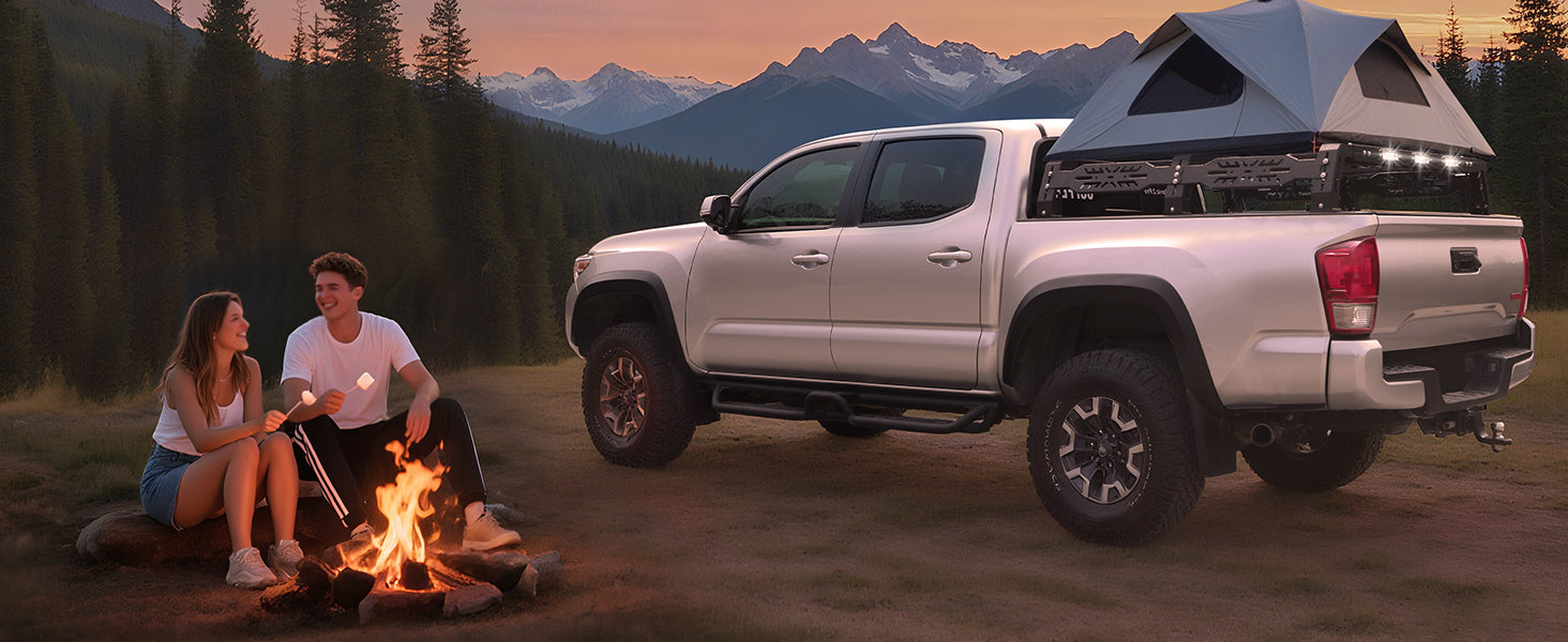 CONVENIENCE: The side features a stylish pattern design, allowing for accessory attachments to decorate your truck. The truck bed rack supports mounting essentials such as fire extinguishers, bicycles, jacks, skis, canoes, luggage, and more. Perfect for securing tents during outdoor camping, its moderate height ensures safe and easy access to items, making your travels more comfortable and convenient.